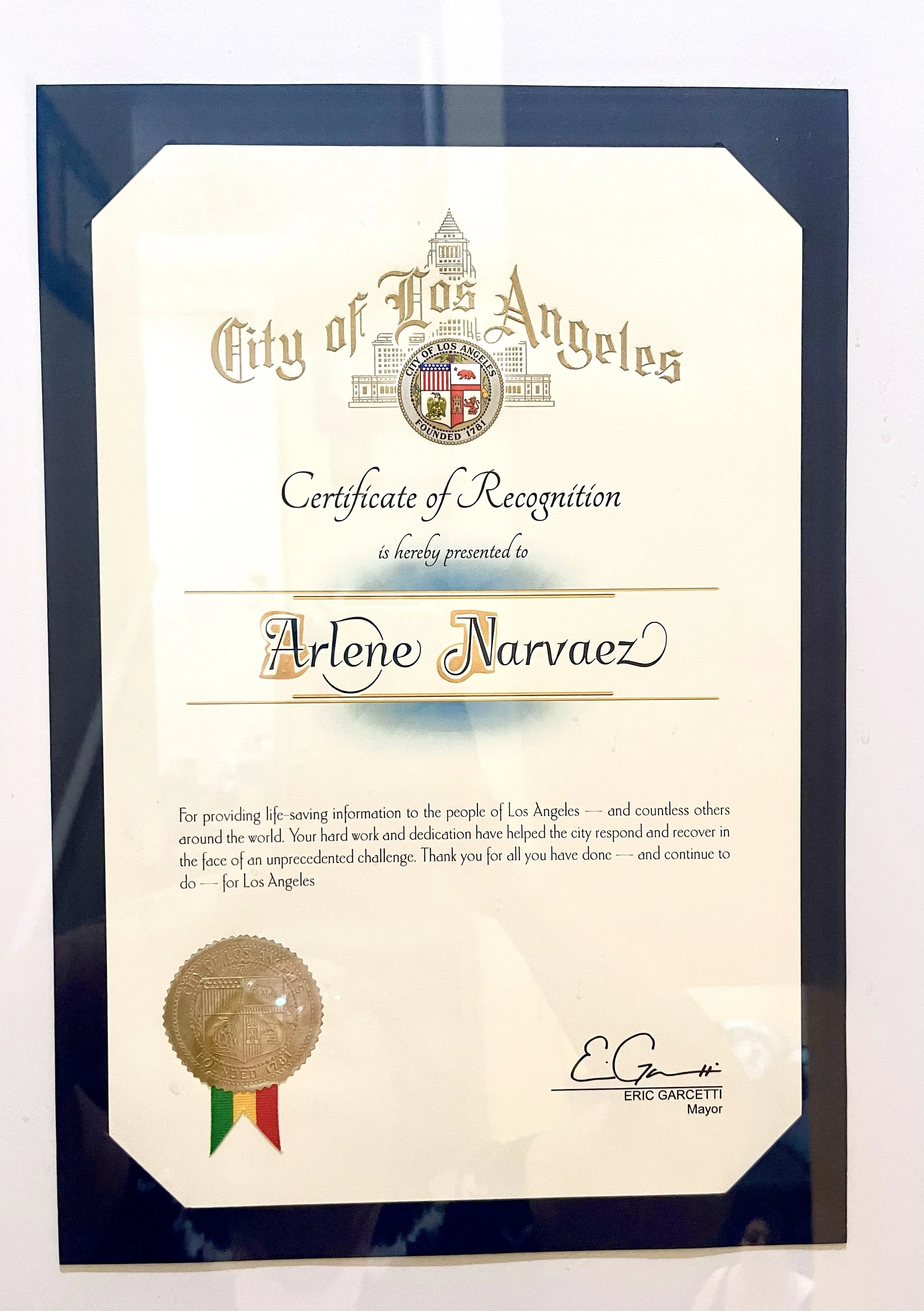For providing life-saving infromation to the people of Los Angeles — and countless others around the world. Your hard work and dedication have helped the city respond and recover in teh face of unprecedented challene. Than you fo all you have done — and continue to do — for Los Angeles